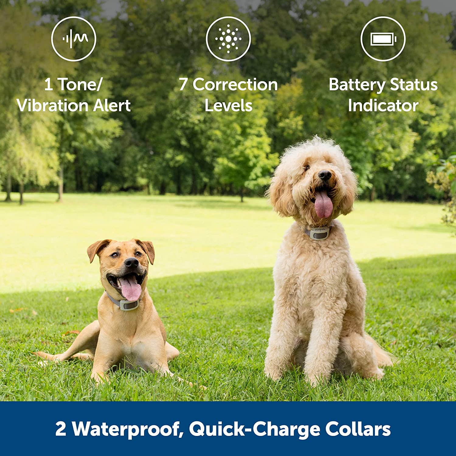 • WATERPROOF, RECHARGEABLE COLLAR: Indicator lights on the receiver collar will let you know when the battery is running low; collar quickly recharges in2-3hours